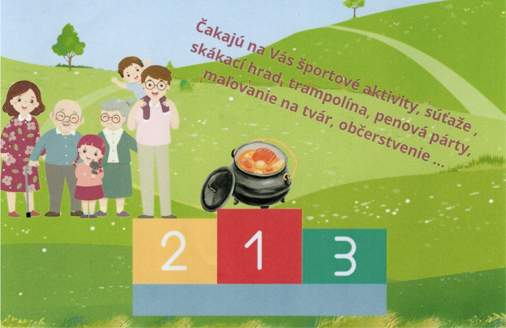 Okrem toho na vás čakajú športové aktivity, súťaže, skákací hrad, trampolína, penová párty, maľovanie na tvár, občerstvenie a i.