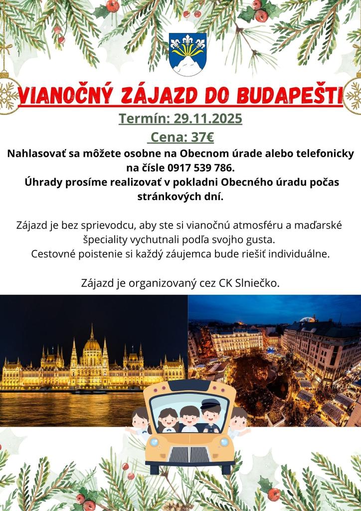 Obecný úrad pozýva všetkých na vianočný zájazd do Maďarska, ktorý sa uskutoční 29. novembra 2025. Zájazd je bez sprievodcu, čo umožní účastníkom vychutnať si vianočnú atmosféru a miestne špeciality podľa svojich predstáv.